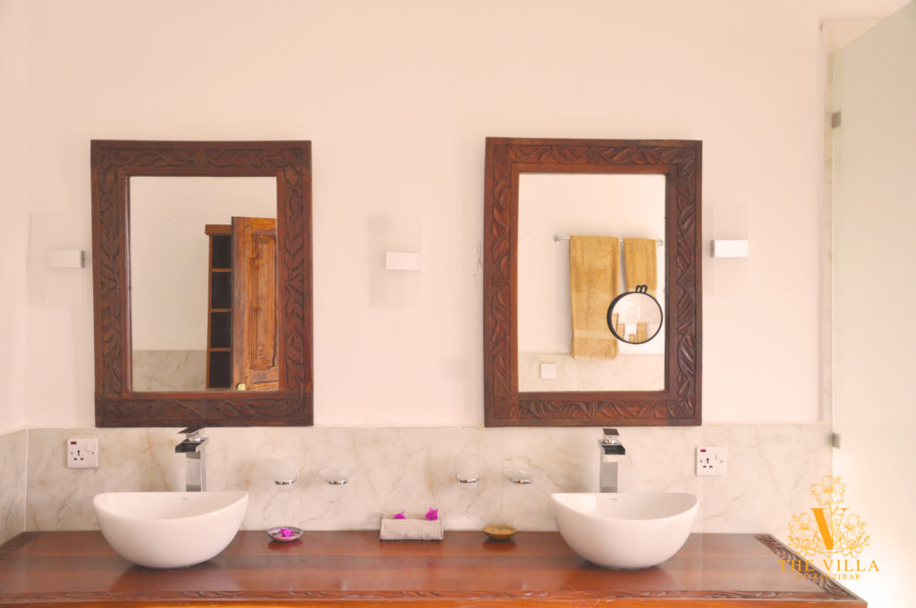 Set on the ground floor of the villa, La Turquoise enjoys a natural connection between the garden and the turquoise waters of the Indian Ocean, with palms and flowering plants in between. Here, light and sea become part of the room’s quiet presence, inviting moments of ease and reflection. A place to slow down, to feel the day unfold, and to remain quietly connected to the horizon.